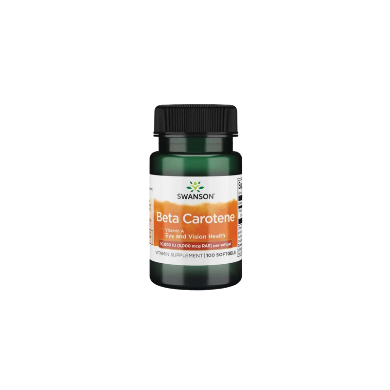 Elevate your wellness routine with Swanson Beta-Carotene (Vitamin A), 10,000 IU. Designed to support both eye and skin health, this premium dietary supplement harnesses the power of beta-caroteneâa naturally occurring pigment with robust antioxidant propertiesâto help safeguard your body against oxidative stress. With each softgel delivering a potent 10,000 IU of beta-carotene, you can ensure your body gets the vitamin A it needs when it requires it most. Ideal for those looking to enhance their overall well-being, Swanson Beta-Carotene is a simple yet effective way to incorporate essential nutrients into your daily regimen.